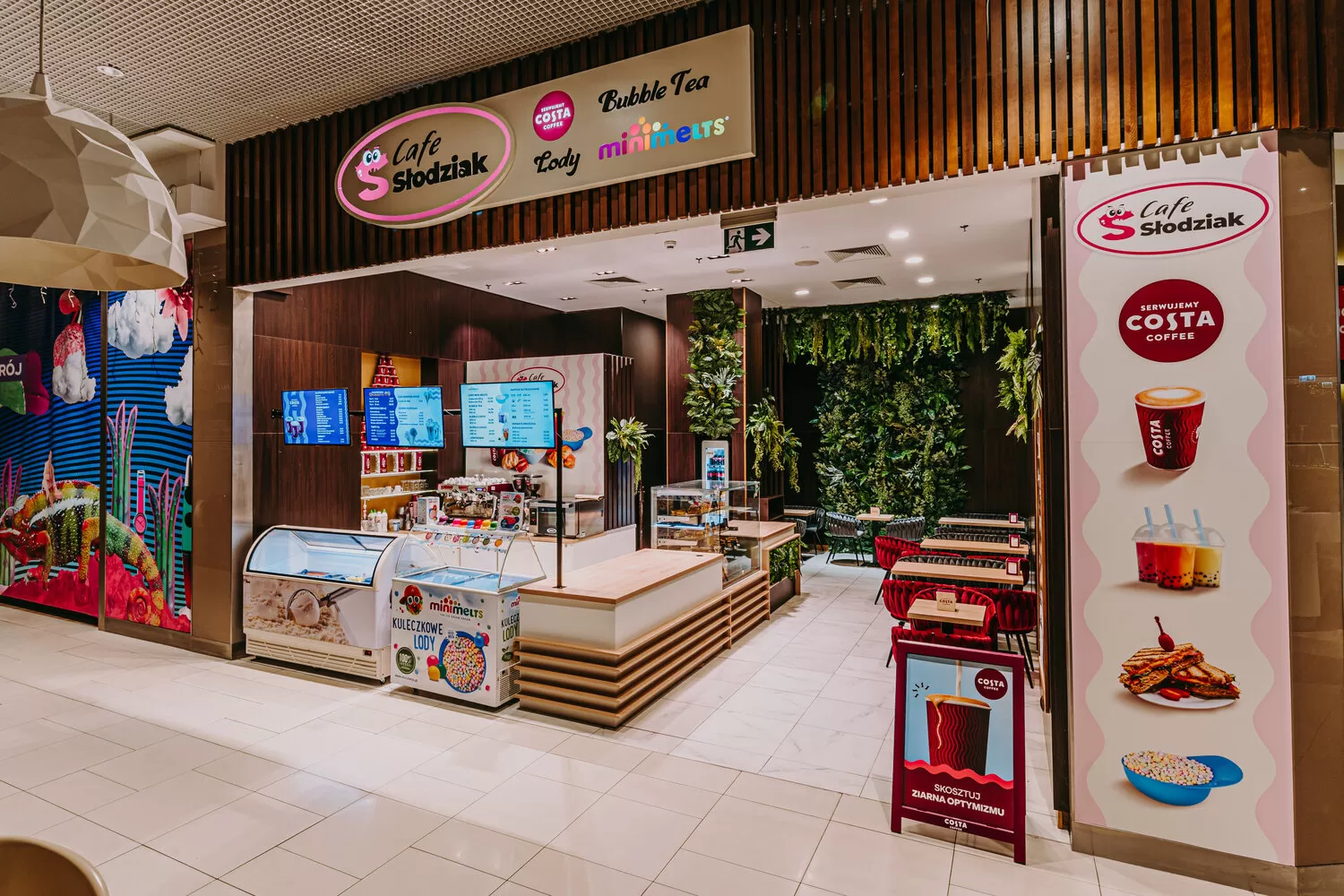 Cafe Słodziak to nie tylko kawiarnia, ale miejsce gdzie może spotkać się cała rodzina i każdy znajdzie coś dla siebie. Nasze menu jest dostosowane do każdej grupy wiekowej. Zaczynając od najmłodszych, którym z pewnością zasmakują lody kuleczkowe MiniMelts. Bubble tea przyrządzane na bazie świeżo parzonej herbaty dla nieco starszych, a dla dorosłych serwujemy kawę Costy, którą każdy miłośnik kawy zna doskonale. Całość uzupełniamy deserami lodowymi na bazie lodów rzemieślniczych i włoskich. Codziennie zapraszamy również na świeżo wypiekane ciasteczka i ciasta.
